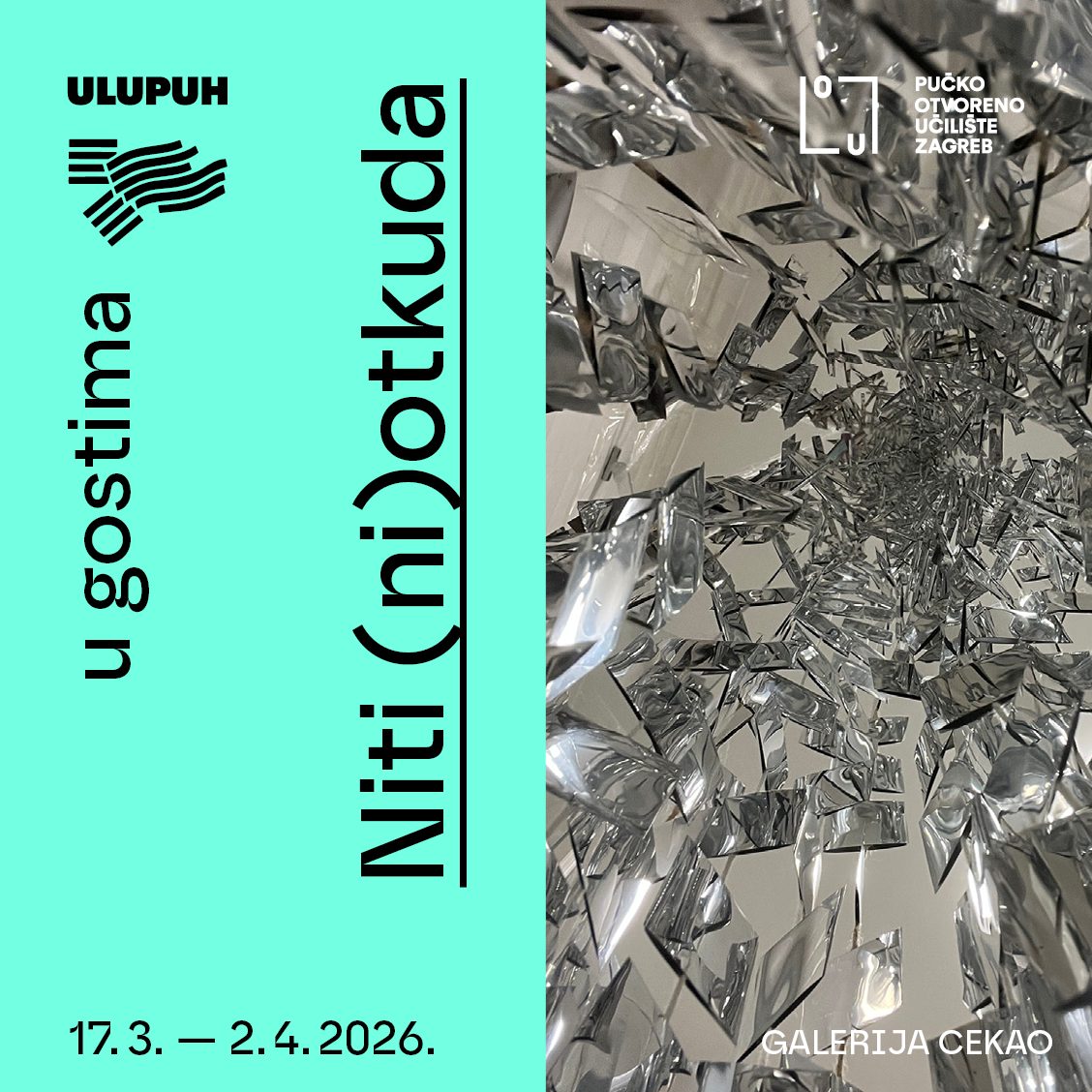 Otvorenje izložbe Niti (ni)otkuda, utorak 17.3. u 19:00 u Galeriji CEKAO, Pučko otvoreno učilište, Ulica Grada Vukovara 68.